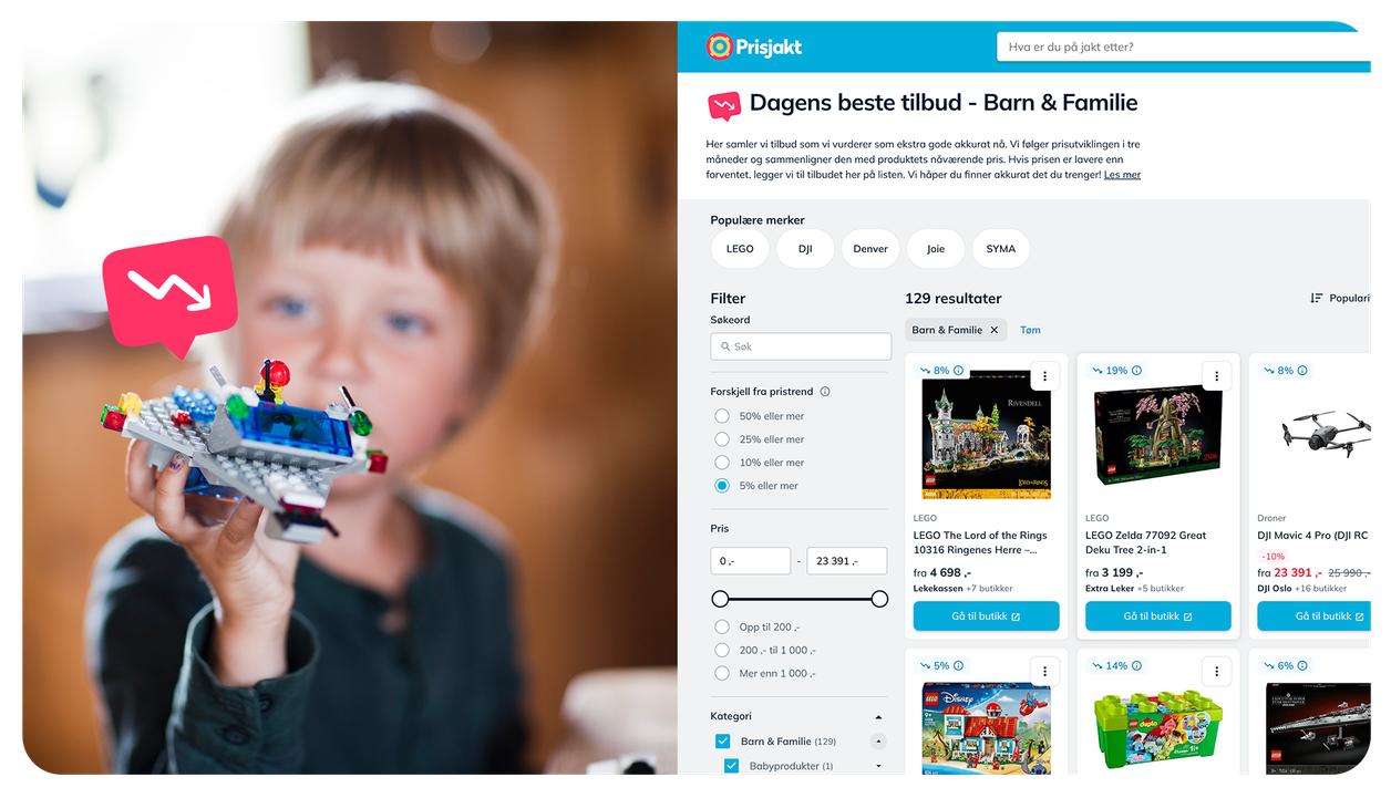 3. Når prisen er minst 10 % lavere enn den forventede prisen i henhold til prisutviklingen, viser vi produktet på siden med Dagens beste tilbud.