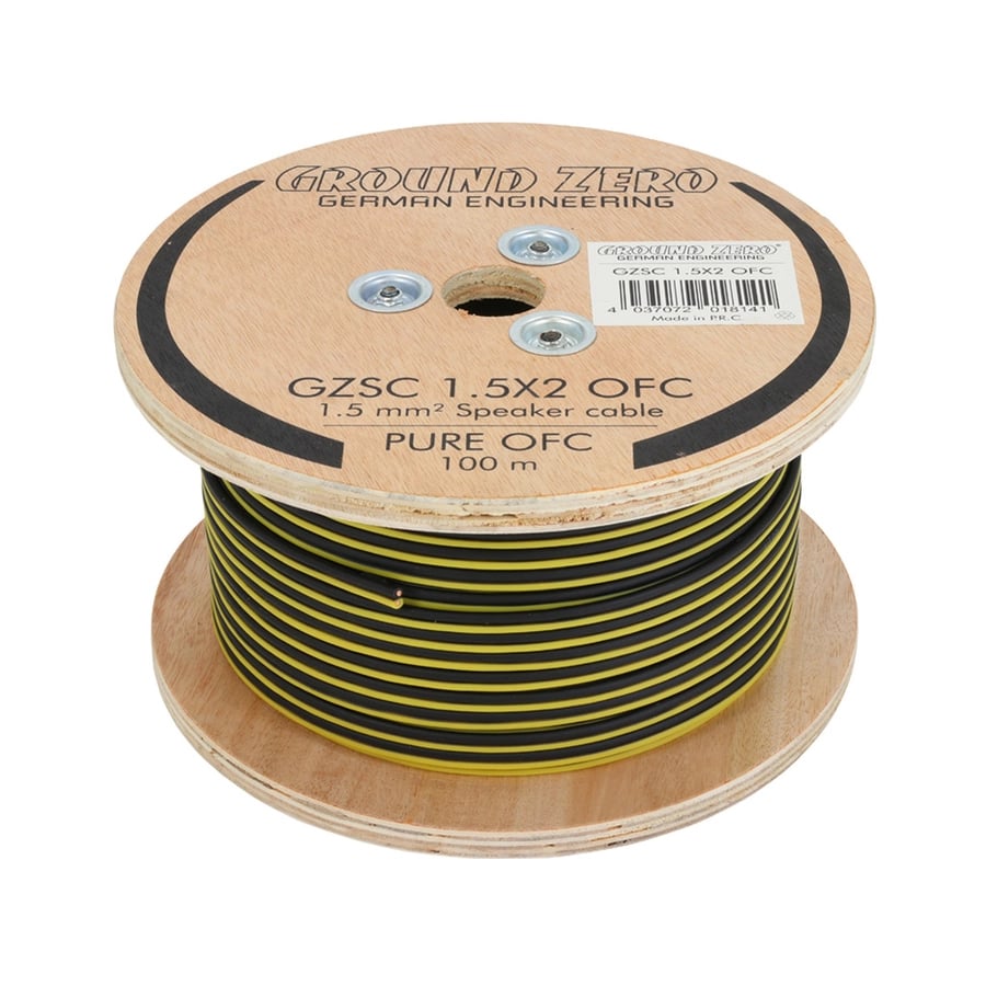 Ground Zero høyttalerkabel 1,5mm2 OFC-kabel, sort/gul