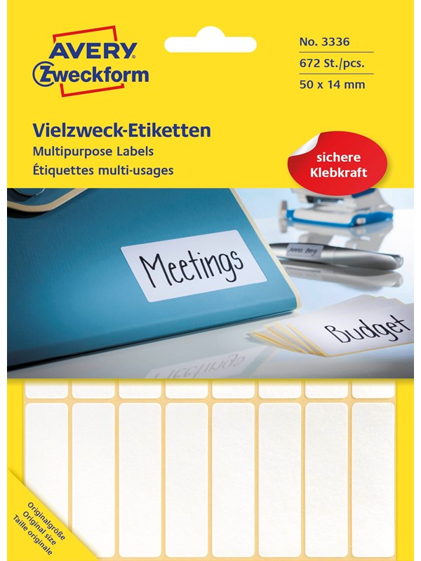 Avery Etiketter til å skrive på , Rask og enkel etikettløsning, 50 x 14 mm, Permanent
