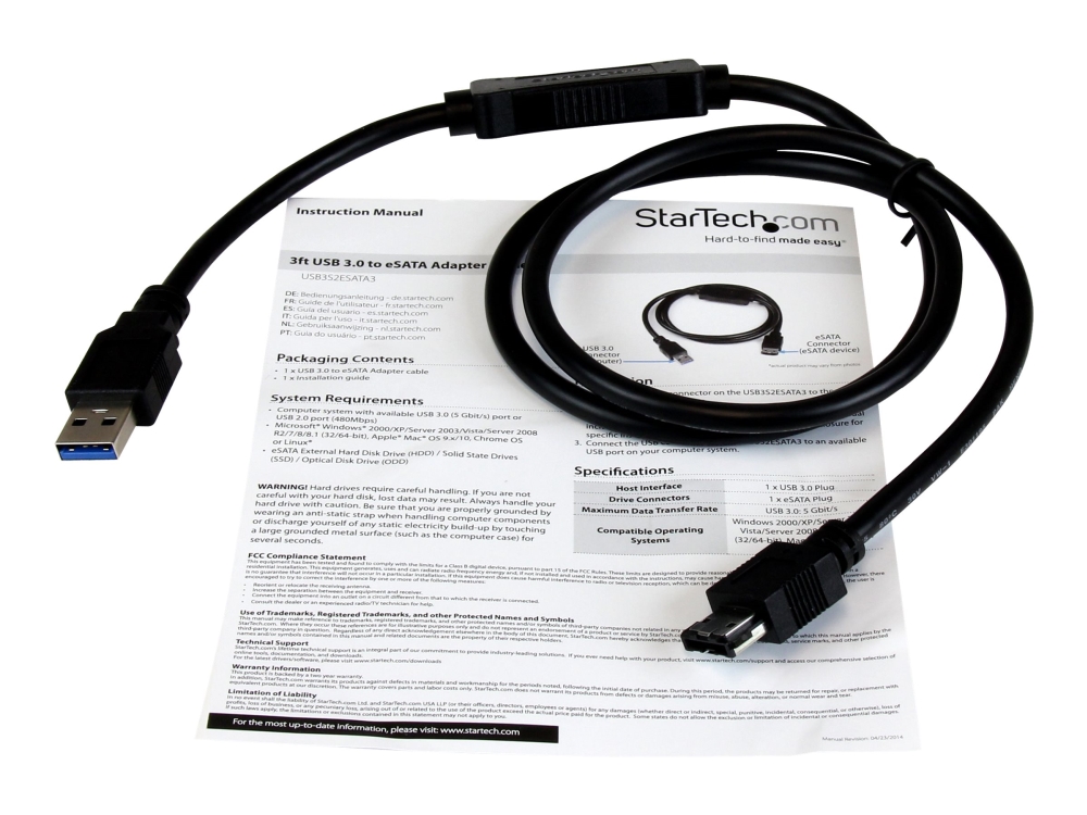 StarTech 3 ft USB 3.0 to eSATA Adapter - 6 Gbps USB to HDD/SSD/ODD Converter - Hard Drive to USB Cable (USB3S2ESATA3) - Diskkontroller - eSATA 6Gb/s -