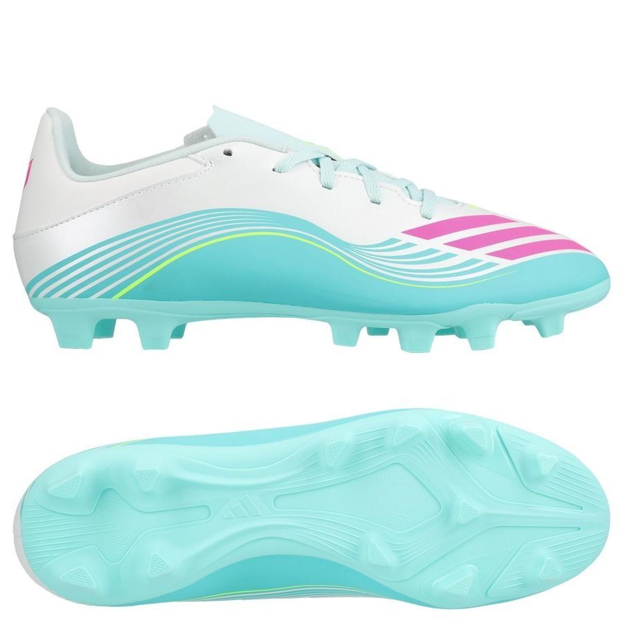 adidas F50 Messi Club FxG Aurora Radiante - Fottøy Hvit/Lucid Pink/Flash Aqua, størrelse 45⅓