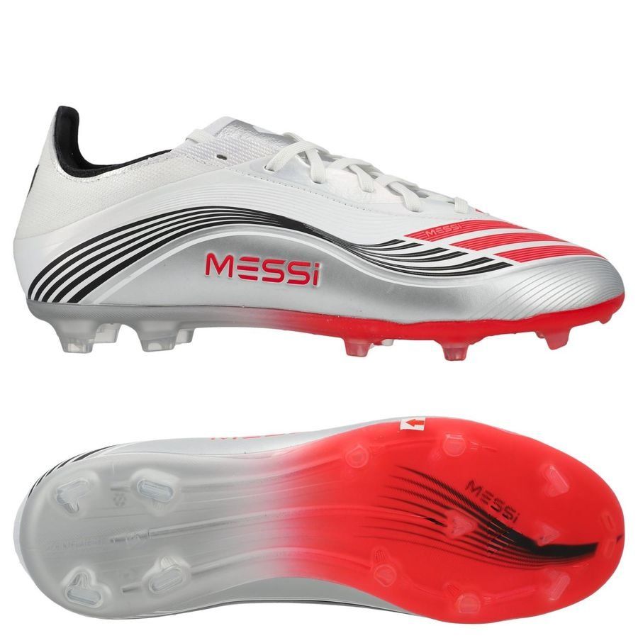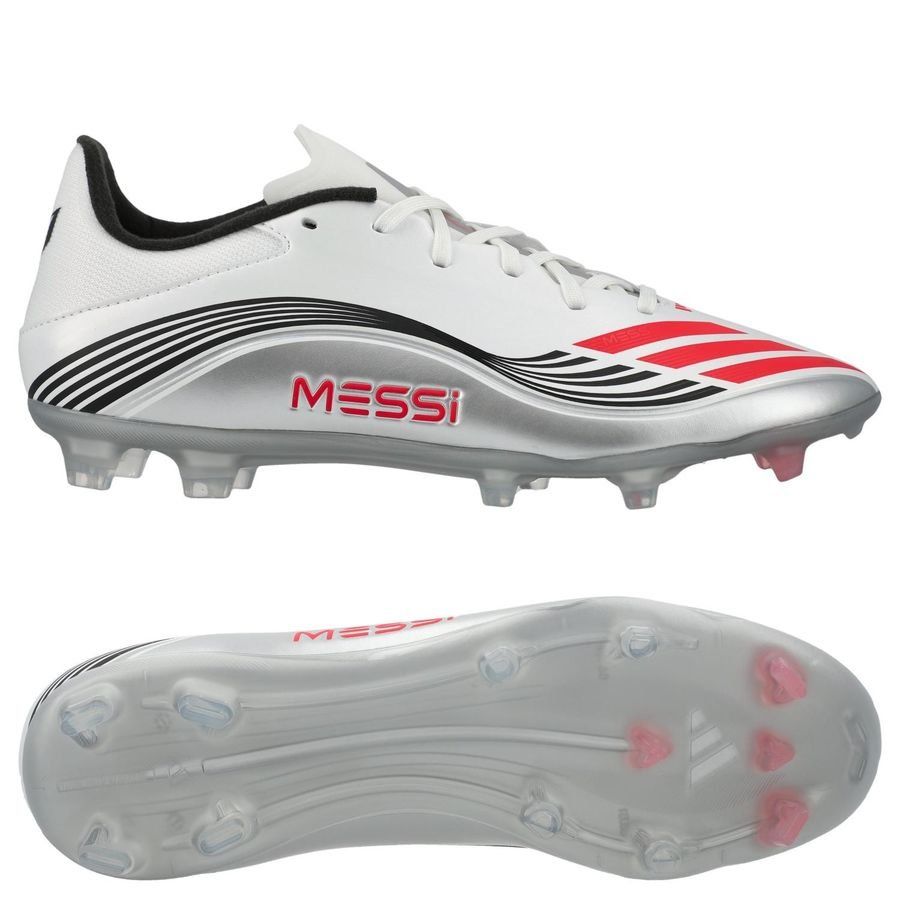 adidas F50 Messi League FG/AG Prestig10 - Fottøy Hvit/Lucid Red/Sølv Metallisk, størrelse 47⅓