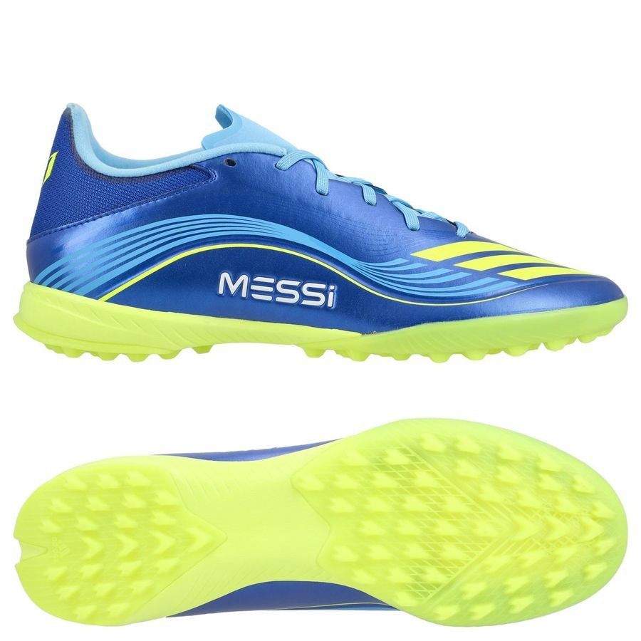 adidas F50 Messi League TF VIS10N - Blå/Gul/Blå Barn - Turf (TF), størrelse 36⅔