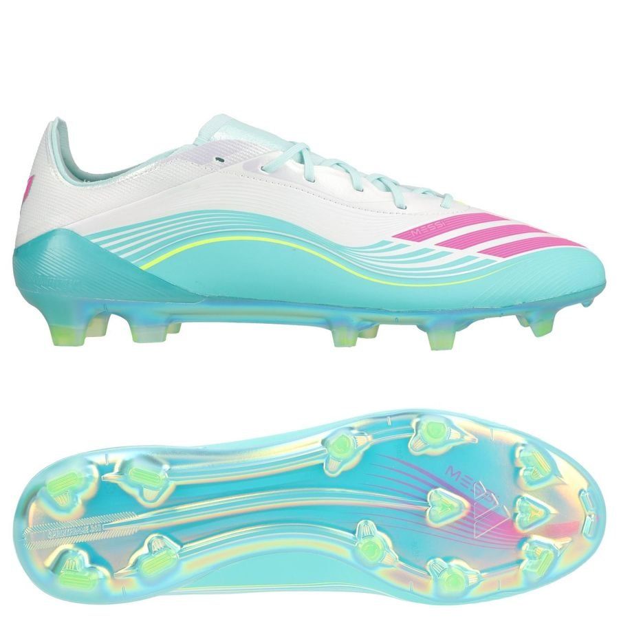adidas F50 Messi Pro FG Aurora Radiante - Fottøy Hvit/Lucid Pink/Flash Aqua - Gress (FG), størrelse 46