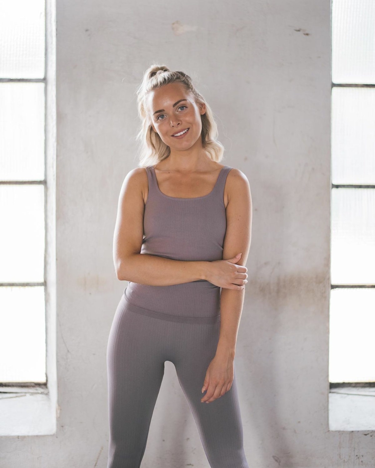 Aim’n Pale Plum Ribbed Seamless Singlet - XS