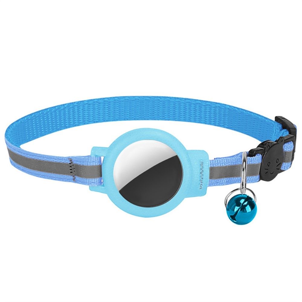 Reflekterende halsbånd med AirTag 1/2-holder og bjelle - katter og små hunder - himmelblå