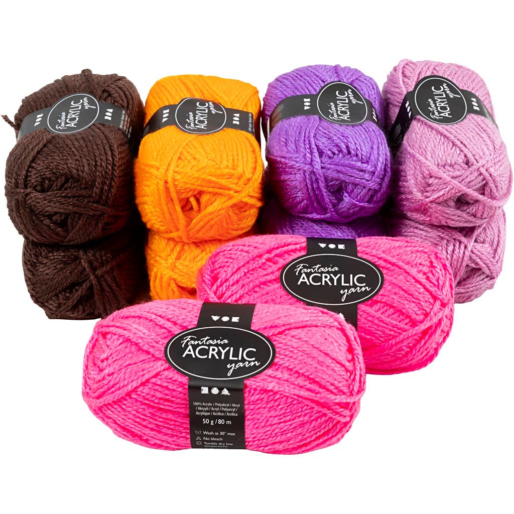 Fantasia Akrylgarn, L: 80 M, ass. farger, 10x50 g/ 1 pk.