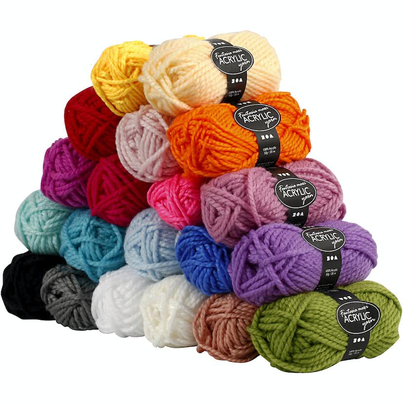 Akrylgarn Creativ Company Fantasia Ass Farger 35 m Størrelse Maxi 20 stk 50 g/1 Pk