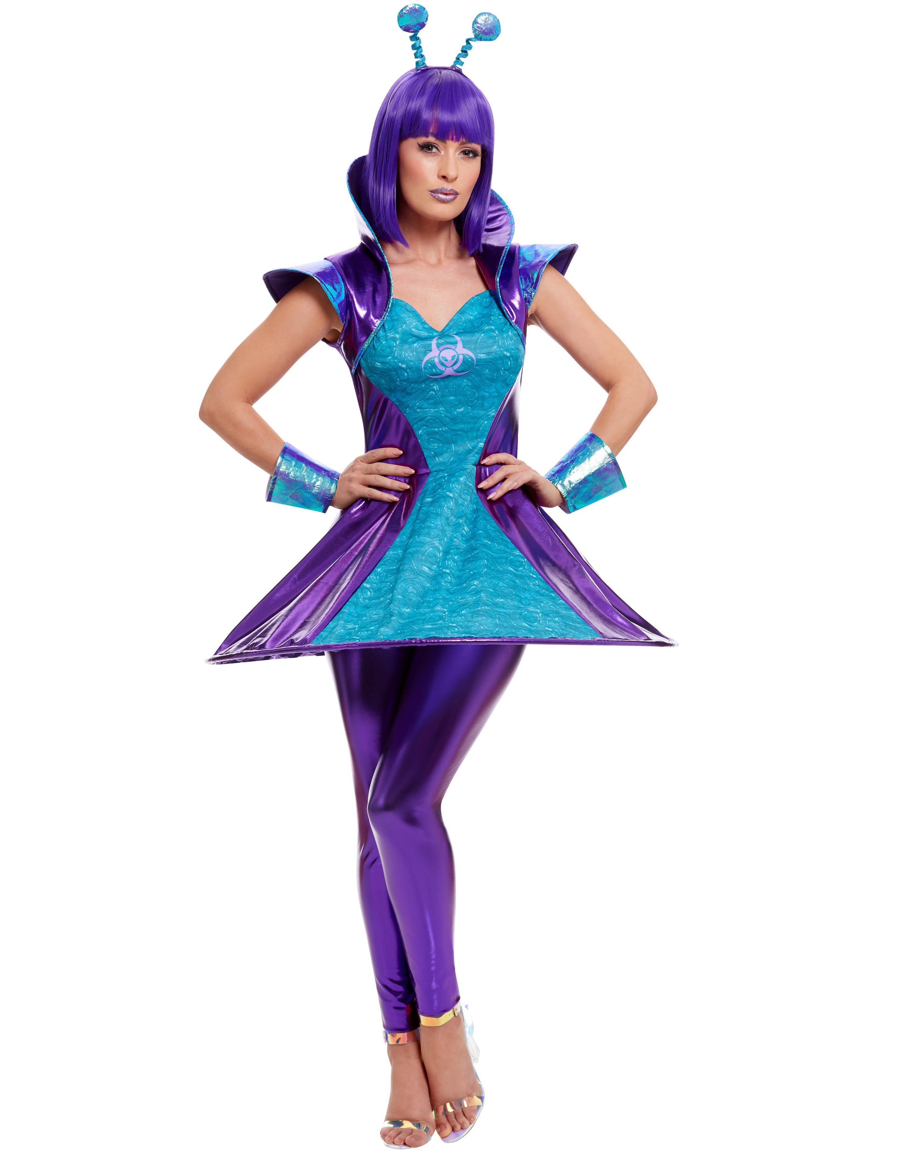 Lilla og Turkist Alien Kostyme til Dame 4 Deler