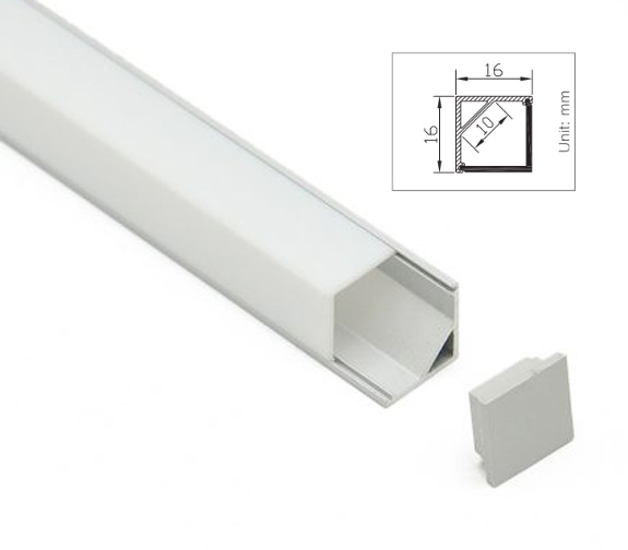Aluprofil Type C til innendørs IP21 LED strip - Hjørne, 1 meter, ubehandlet aluminium, velg deksel - Front deksel : 2. Melkehvit