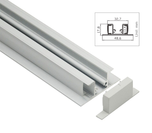 Aluprofil Type Z for innendørs IP21 LED strip - Innfelt, 1 meter, ubehandlet aluminium, velg deksel - Front deksel : Uten deksel