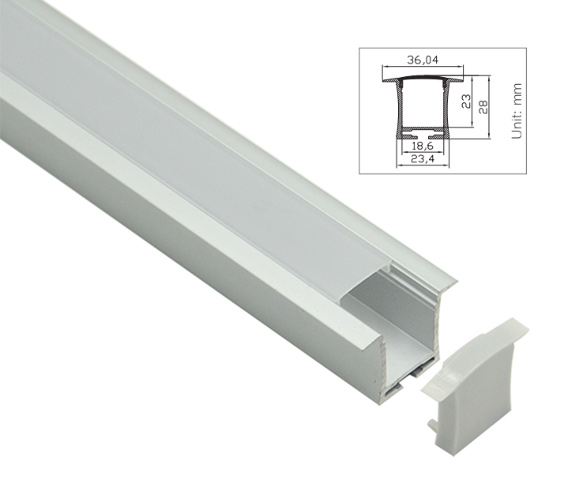 Aluprofil Type Z for innendørs IP21 LED strip - Innfelt, 1 meter, ubehandlet aluminium, velg deksel - Front deksel : 1. Mattert