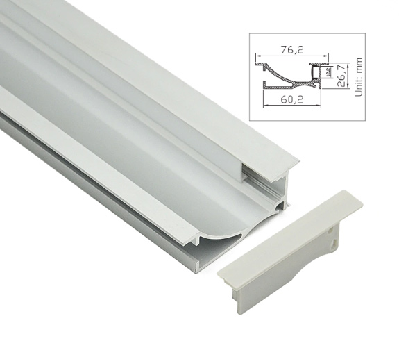 Aluprofil Type Z for innendørs IP21 LED strip - Innfelt, 1 meter, ubehandlet aluminium, velg deksel - Front deksel : 2. Melkehvit