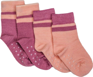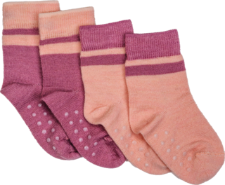 Bamle ull/bambus sokker med antiskli 2-pakk, dustypink