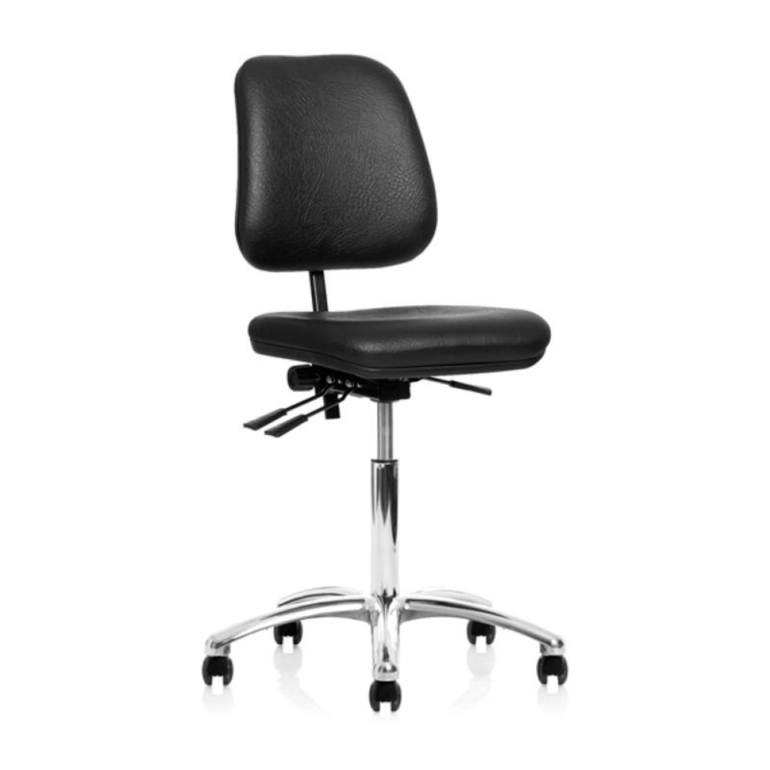GBP Arbeidsstol Industry, svart kunstskinn, middels høyde, lav rygg, med lettrullende hjul