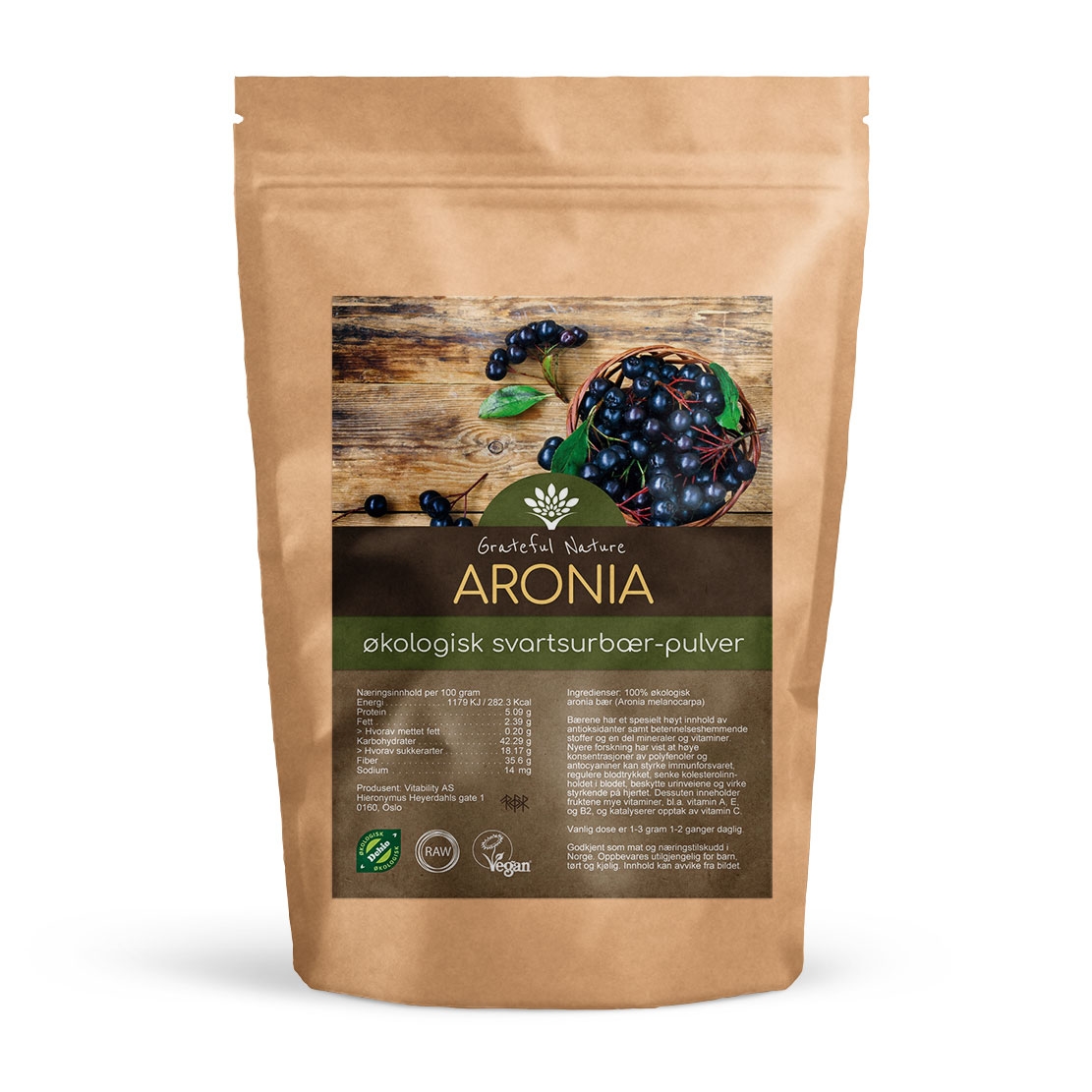 Grateful Nature Aronia - Svartsurbær Pulver Økologisk 250 g