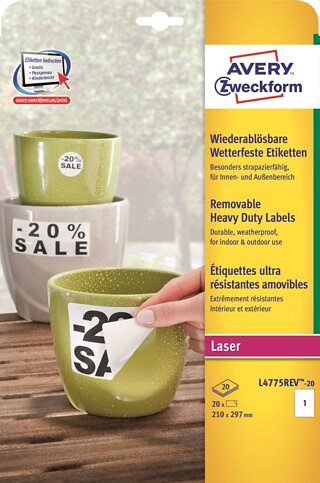 Avery Laseretikett L4775 Avtagbara Vit 210x297mm