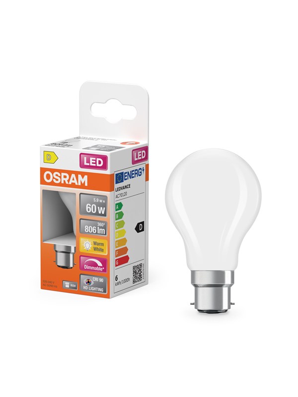 Osram LED-lyspære Standard 8,5W/827 (60W) Frosted Dimmable B22d