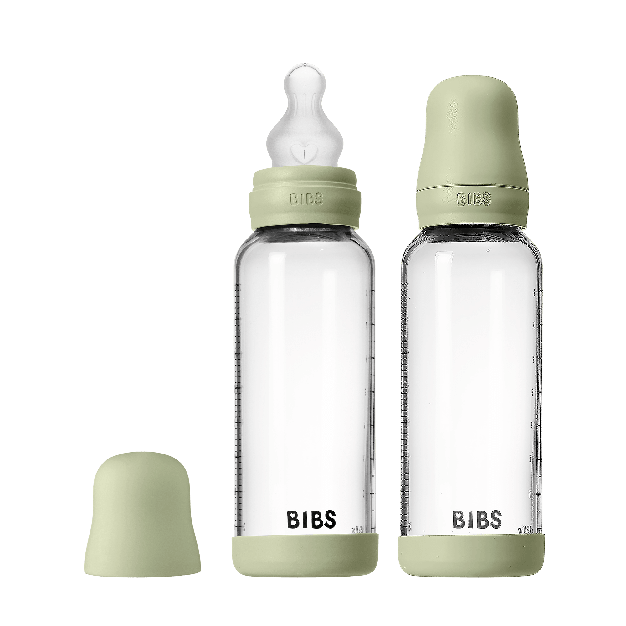 BIBS - Glass Baby Bottle Round Silicone 2 Pack - Sage - 120 ml