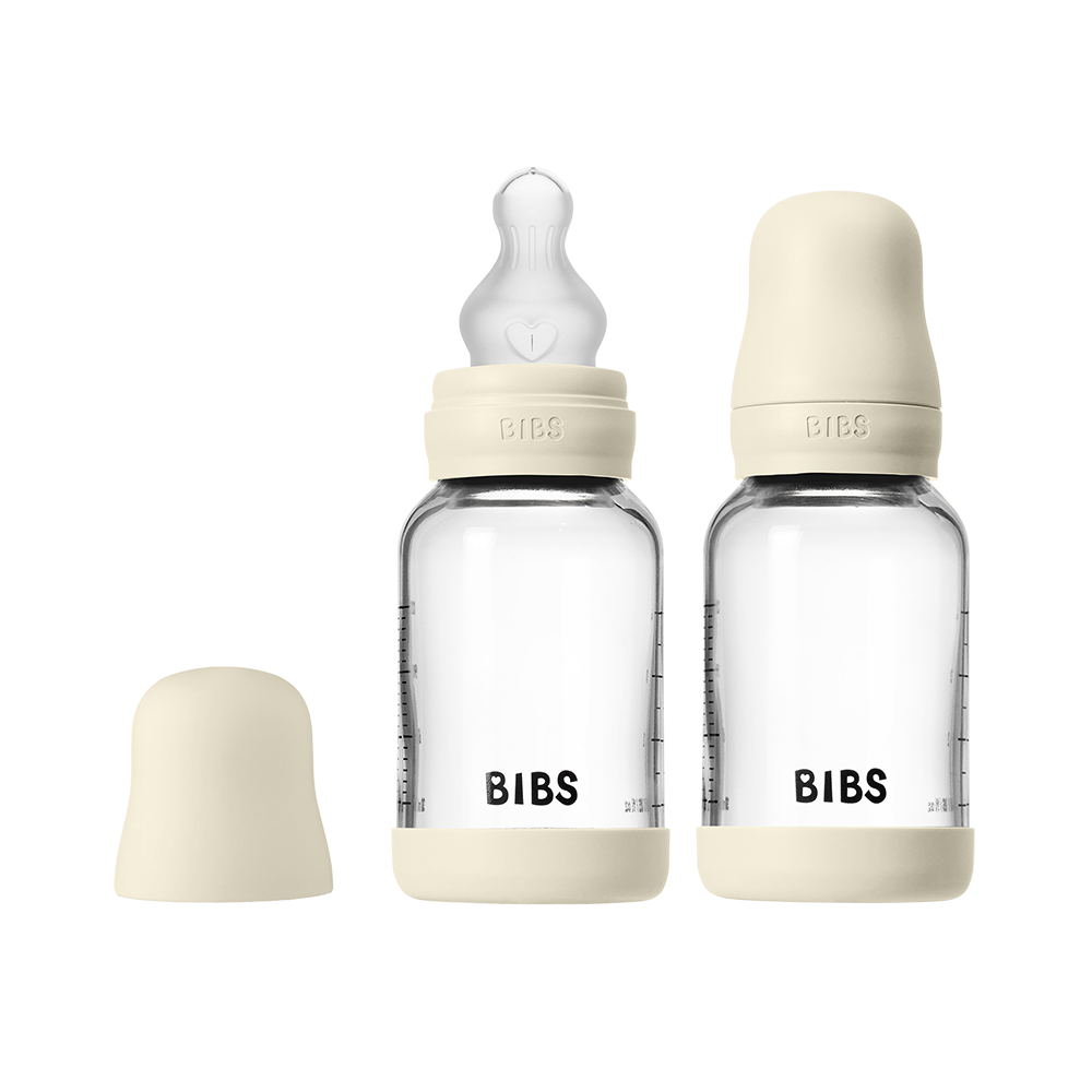 BIBS - Glass Baby Bottle Round Silicone 2 Pack - Ivory - 120 ml