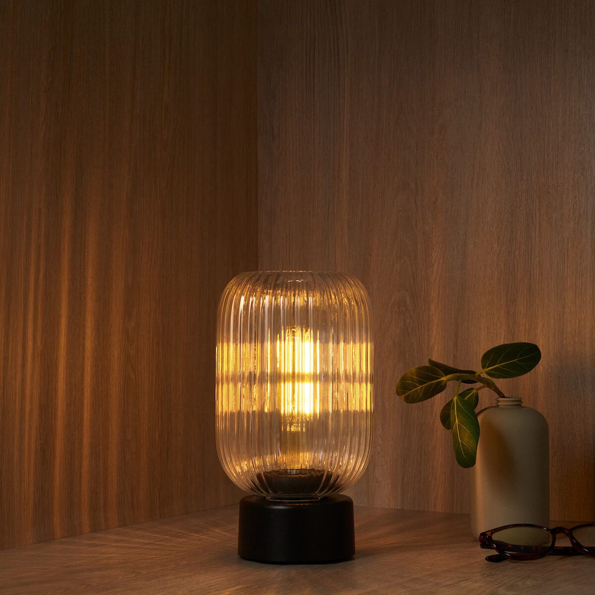 Batteridrevet bærbar bordlampe i glass, oppladbar