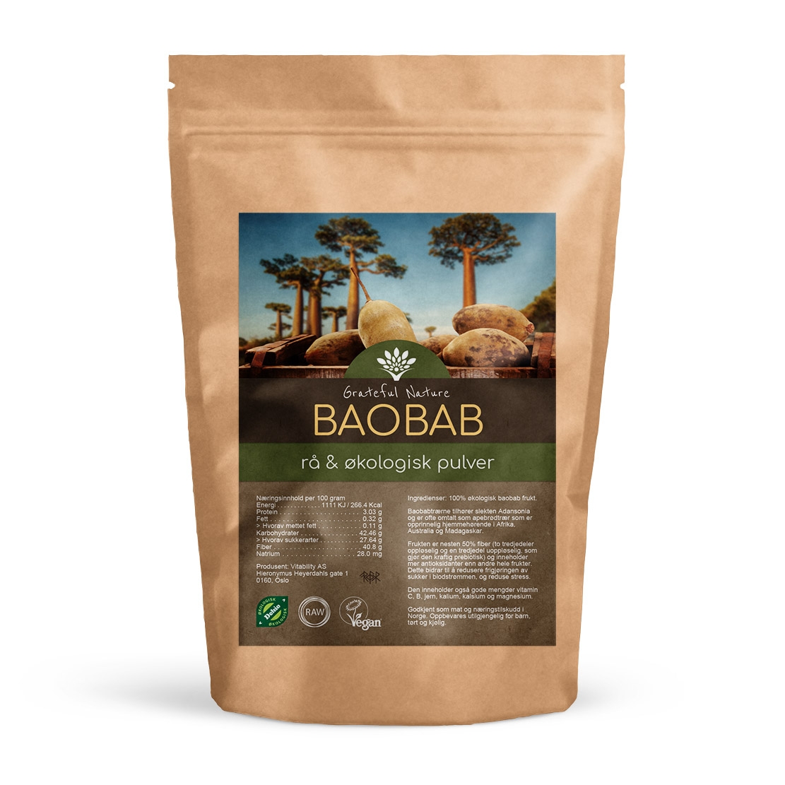 Grateful Nature Baobab frukt - Pulver Økologisk 250 g