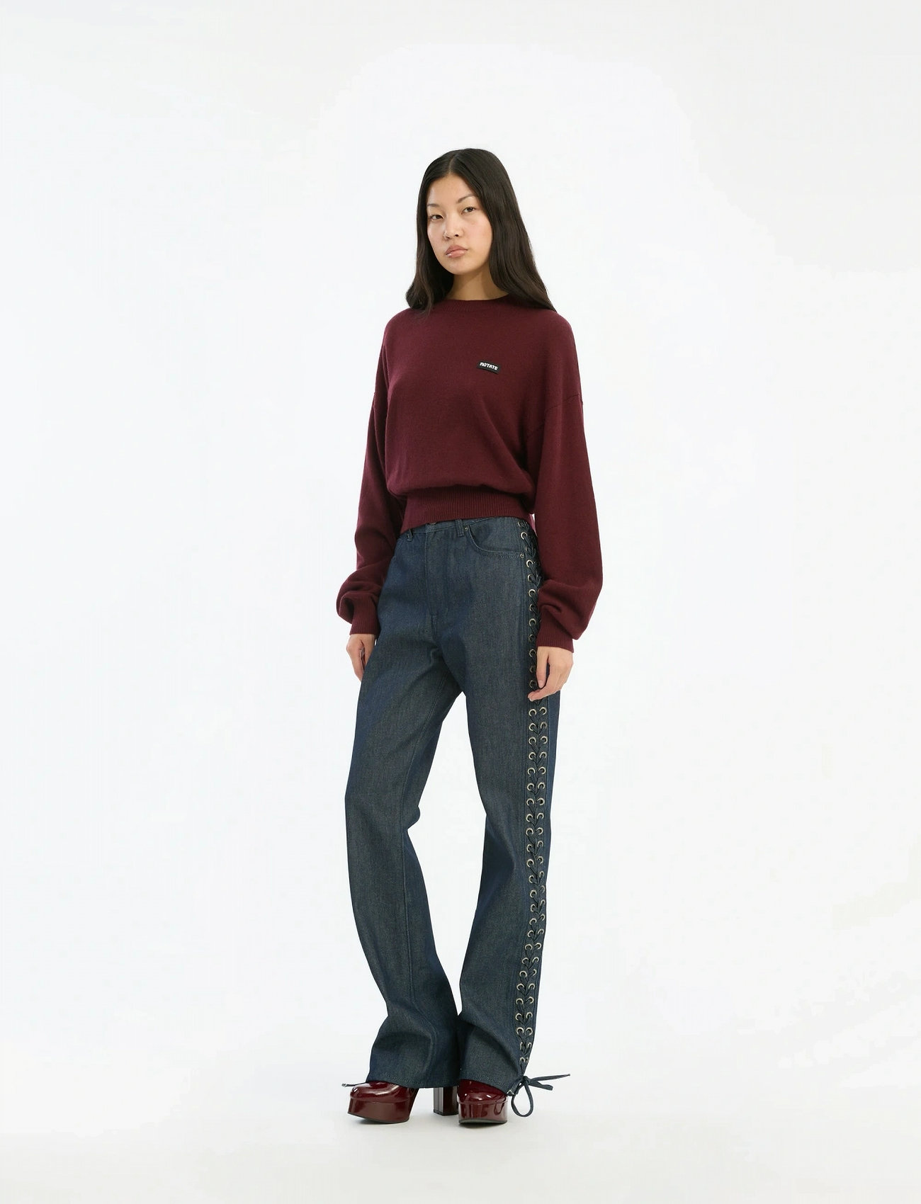 ROTATE Birger Christensen Basic Crewneck Sweater - Burgundy - XS