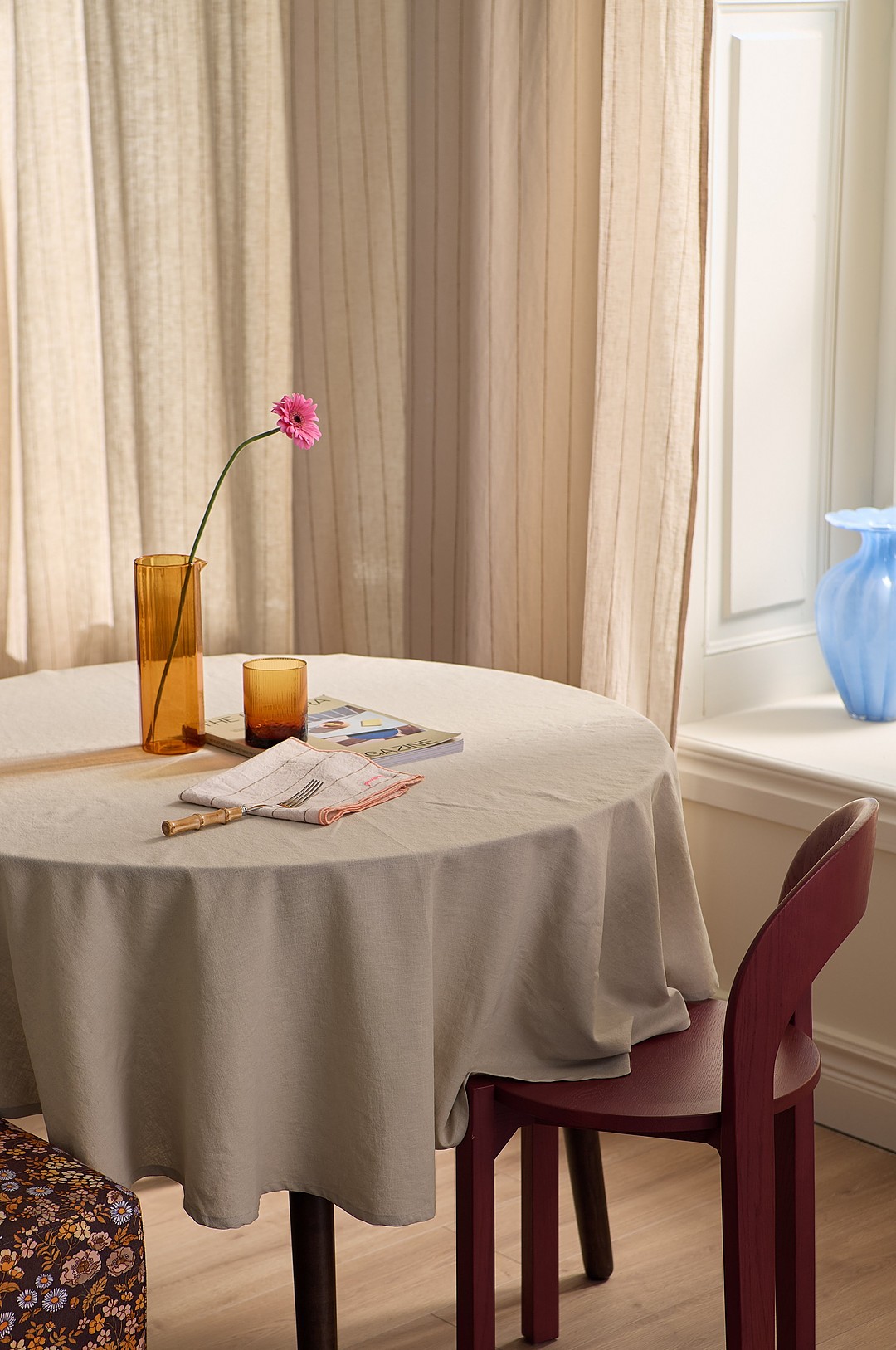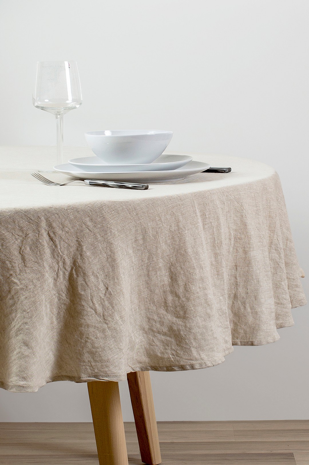 Ellos Home - Duk Elly i resirkulert halvlinne Ø 150 cm - Beige