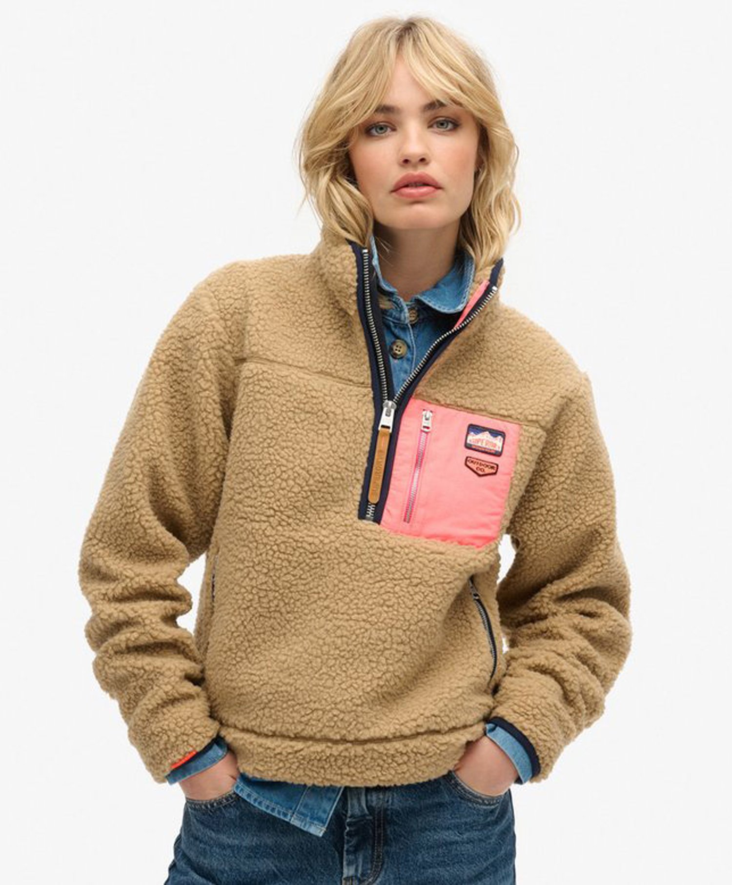 Superdry Superdry Vintage Retro Half Zip Fleece Lys beige S