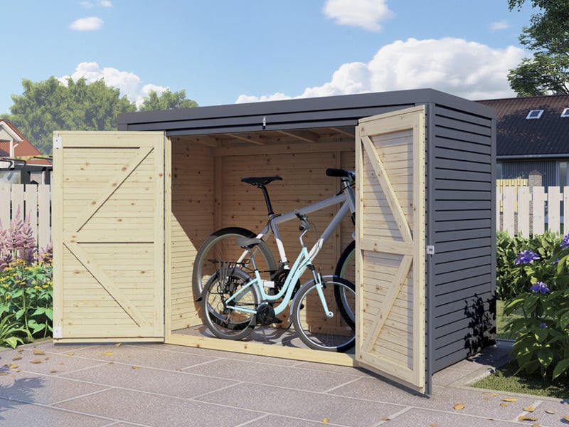 Sykkelskur i tre, Bertilo Box Bike, 2,07x1,03x1,43m, 2,1m², Antrasitt