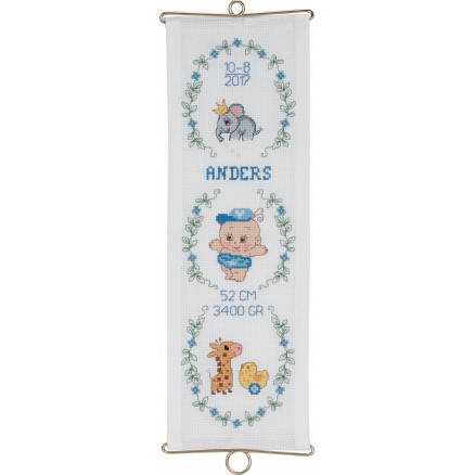 Permin Broderisett Aida Bell String Birth Poster Anders 14x42cm