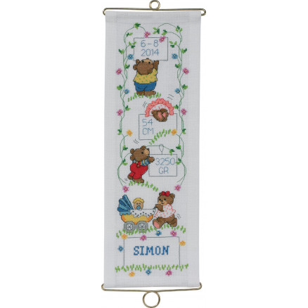 Permin Broderisett Aida Bell String Birth Poster Simon 14x40cm