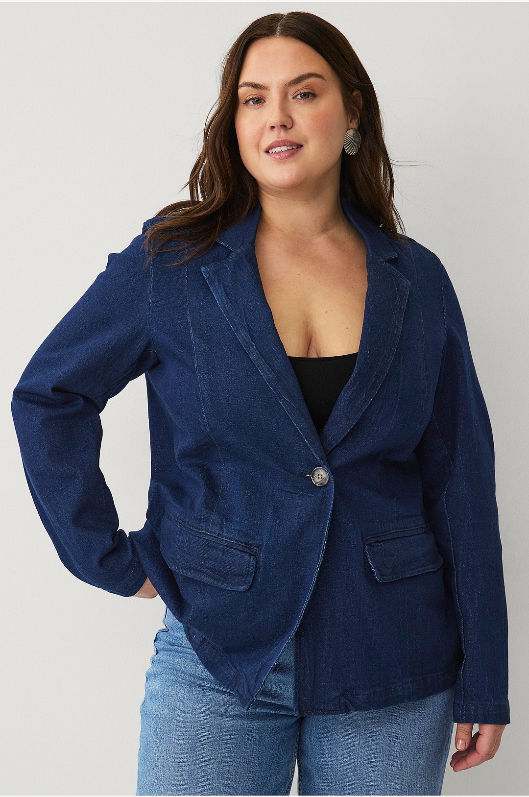 Zizzi - Dongeri blazer jLiva L/S Denim Blazer - Blå