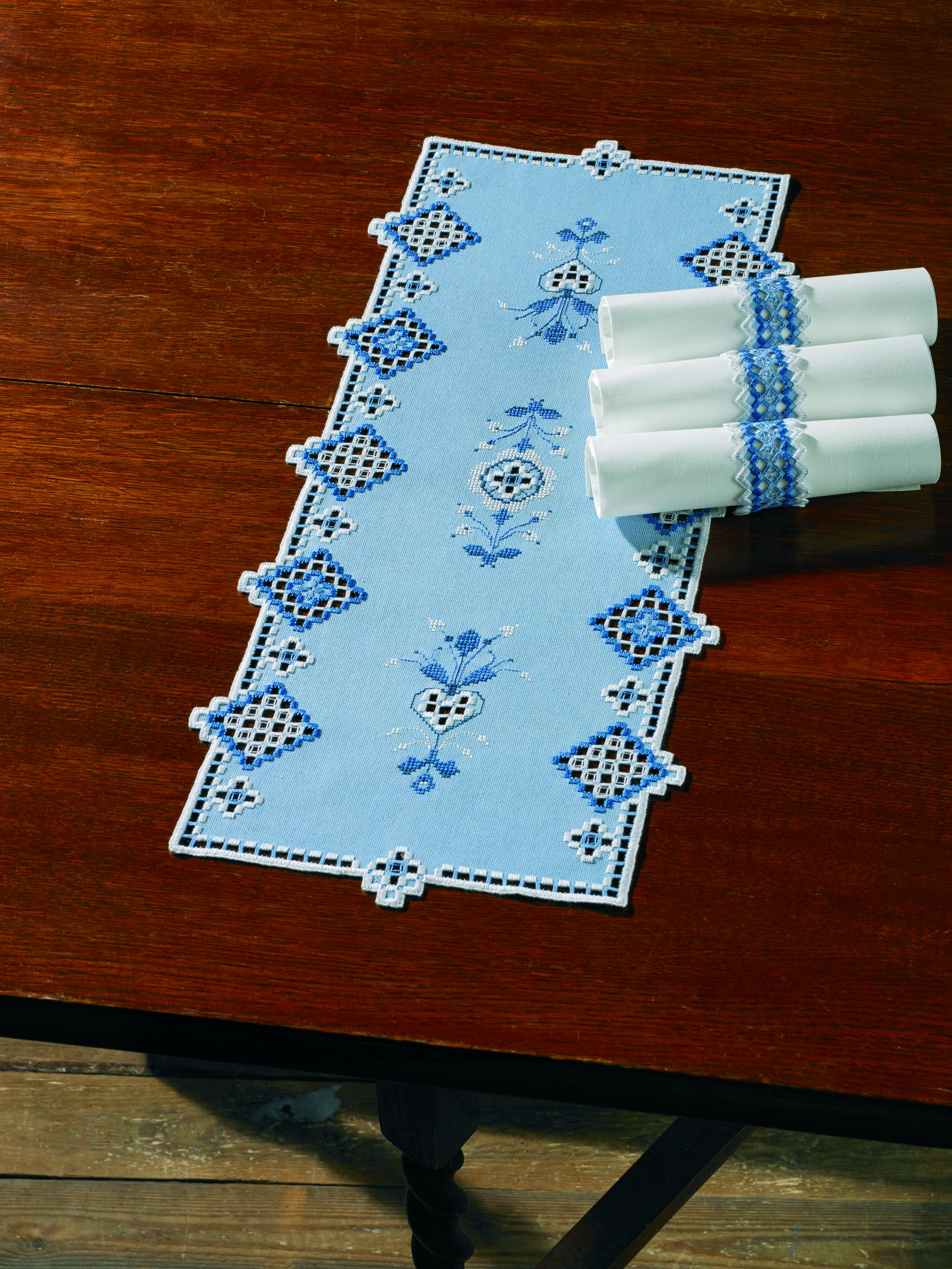 Holmen - Amala løper 40x140 cm offwhite/blå