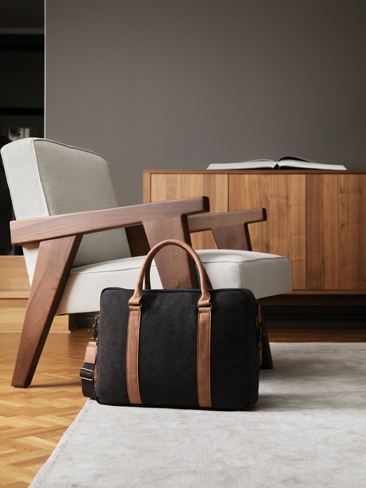 Black canvas messenger bag