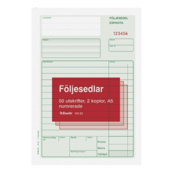 Esselte Blankett följesedel A5 2x50 fl.karb m kr