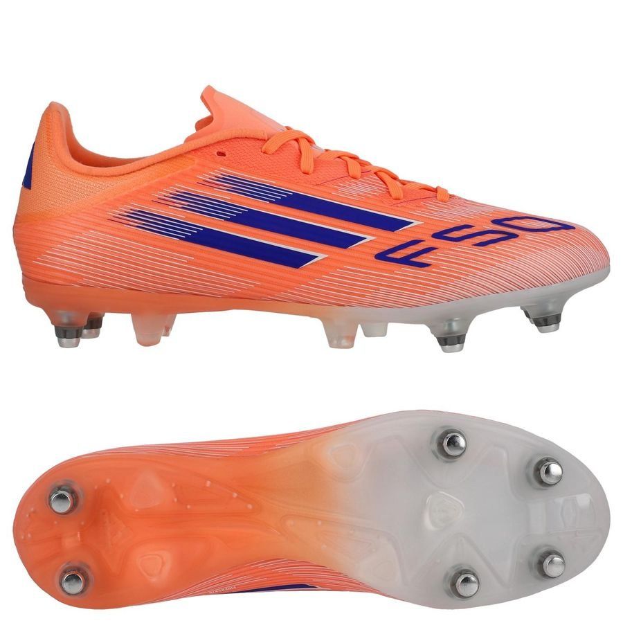 adidas F50 League SG Coral Blaze - Oransje/Lucid Blue/Fottøy Hvit - Vått gress (SG), størrelse 44⅔