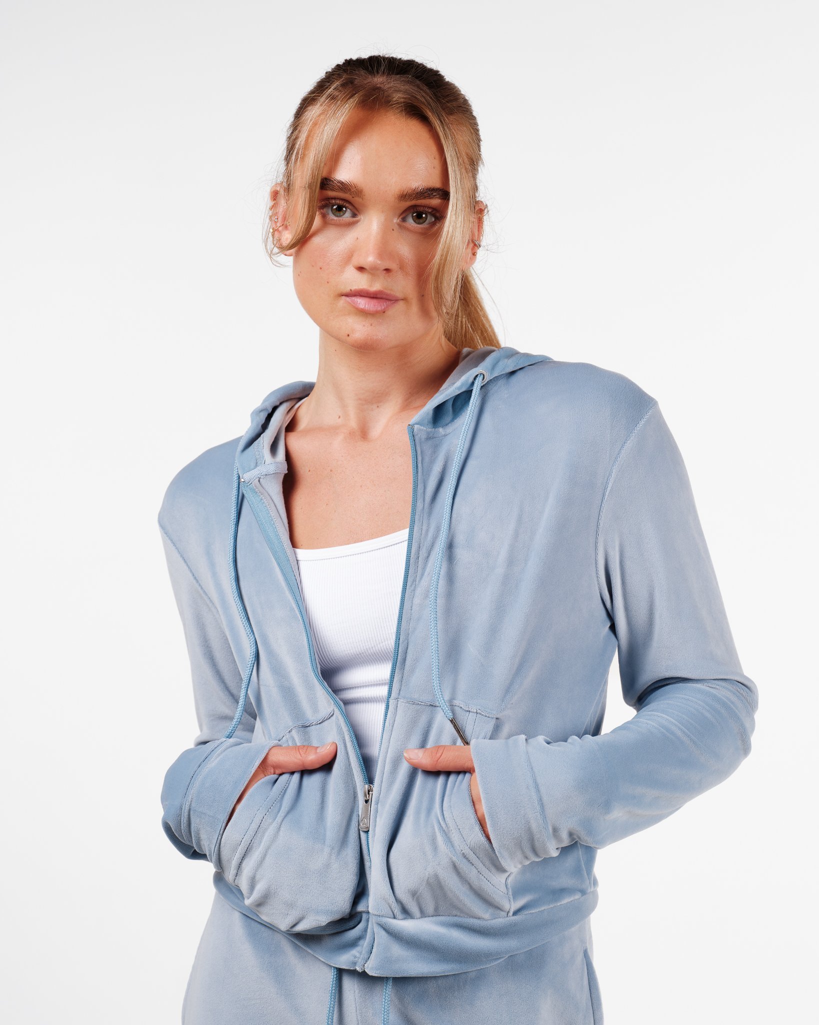 Weightless Jacey Velour Zip Hoodie Blue Dusk - S