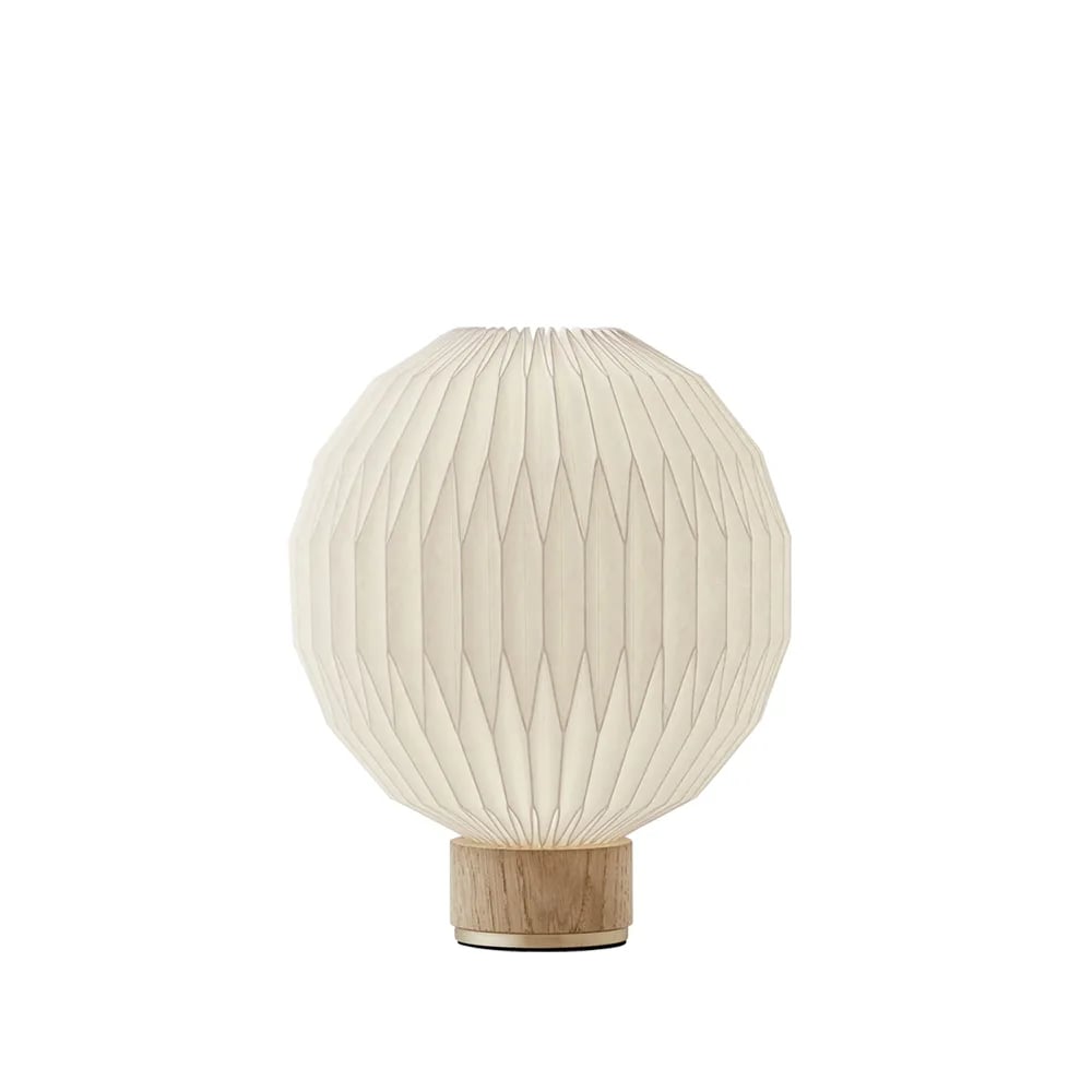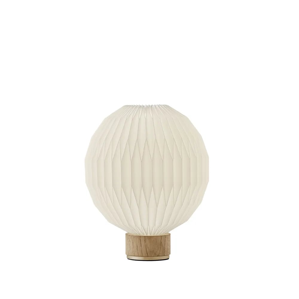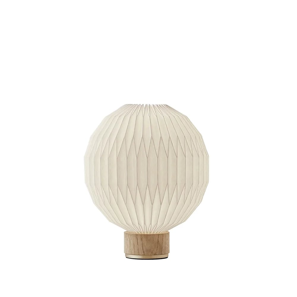 Le Klint 375 bordlampe hvit, x-small- pappskjerm, lampfot i eik