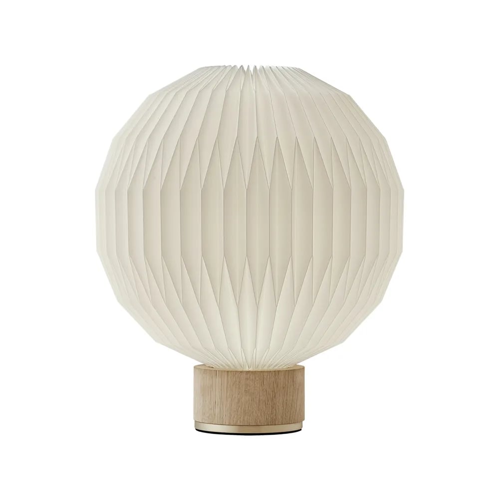 Le Klint 375 bordlampe hvit, medium-pappskjerm, lampefot i eik