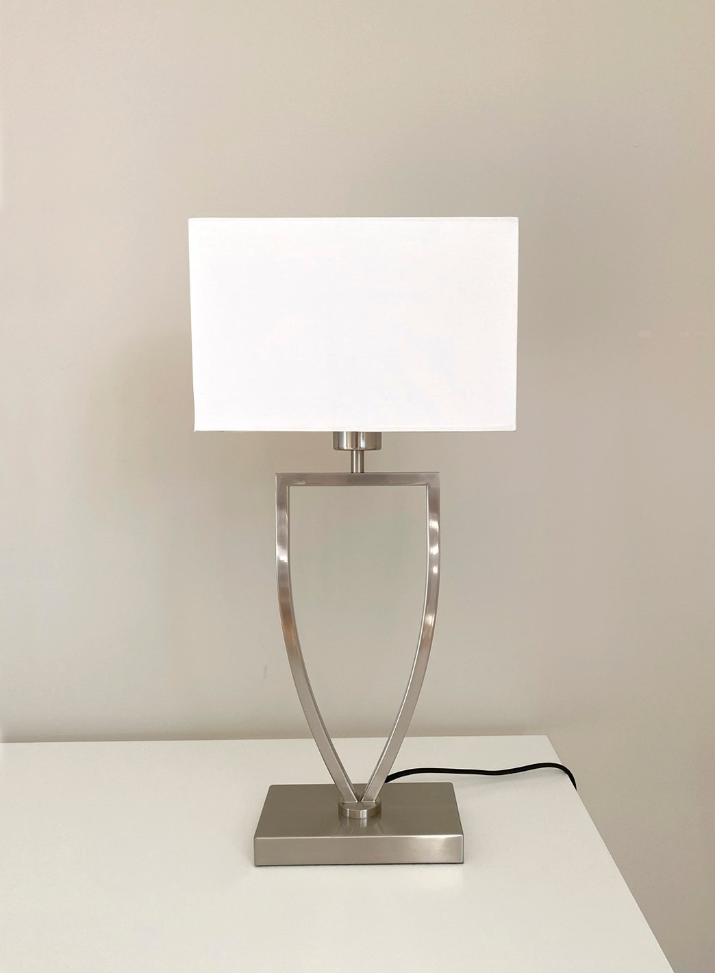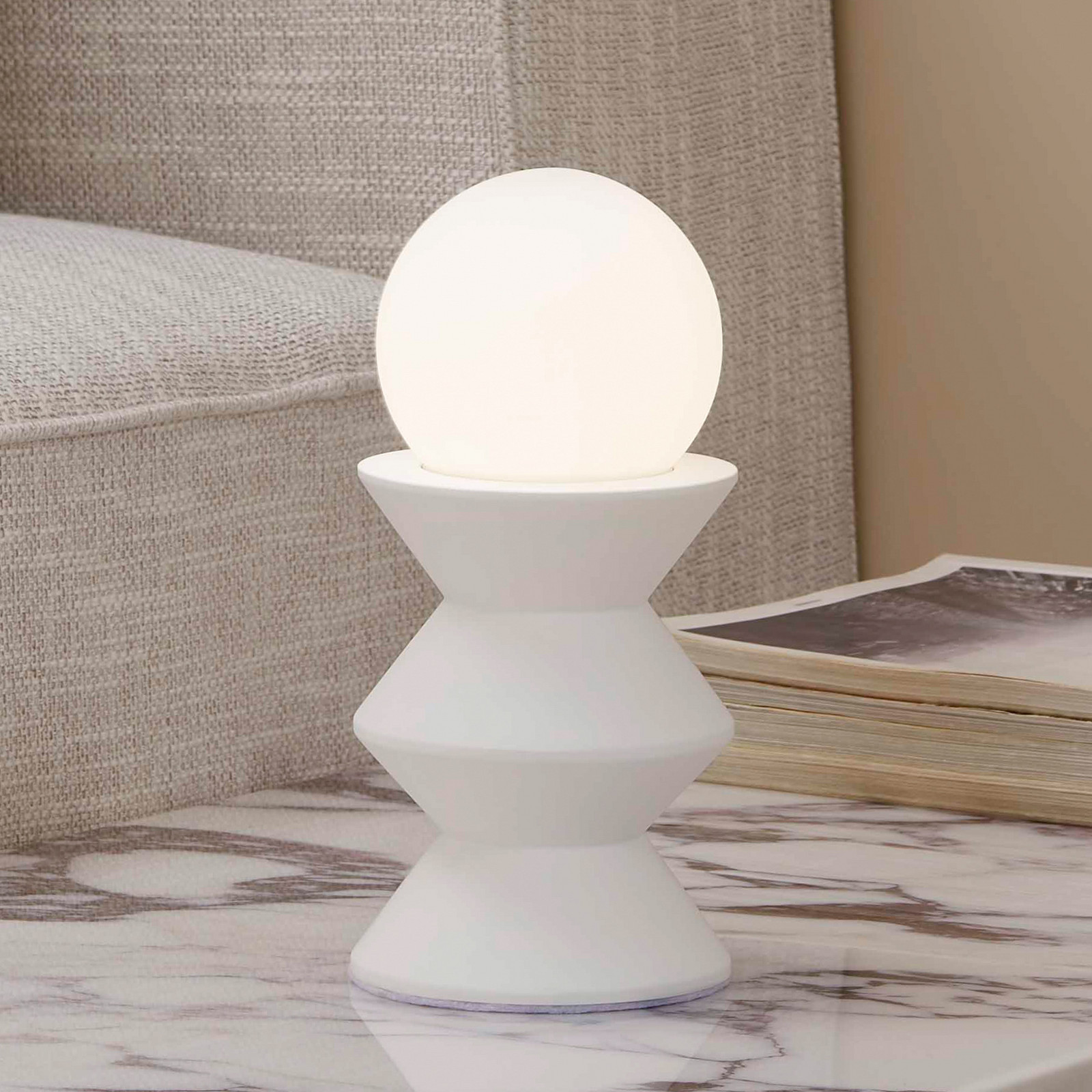 Batteridrevet bordlampe med hvit skjerm