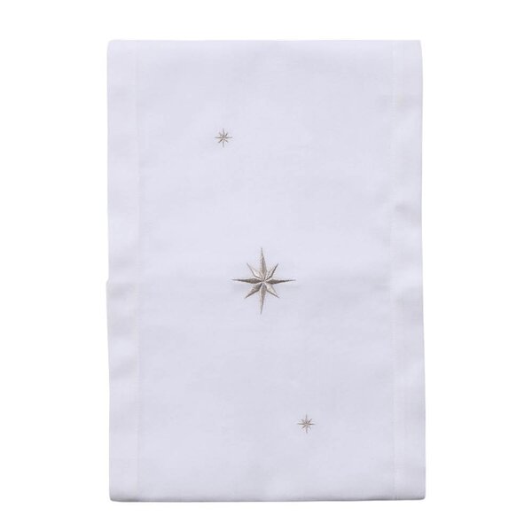 Langkilde & Søn - Bordløper 30x175 cm hvit med broderte sølvstjerner