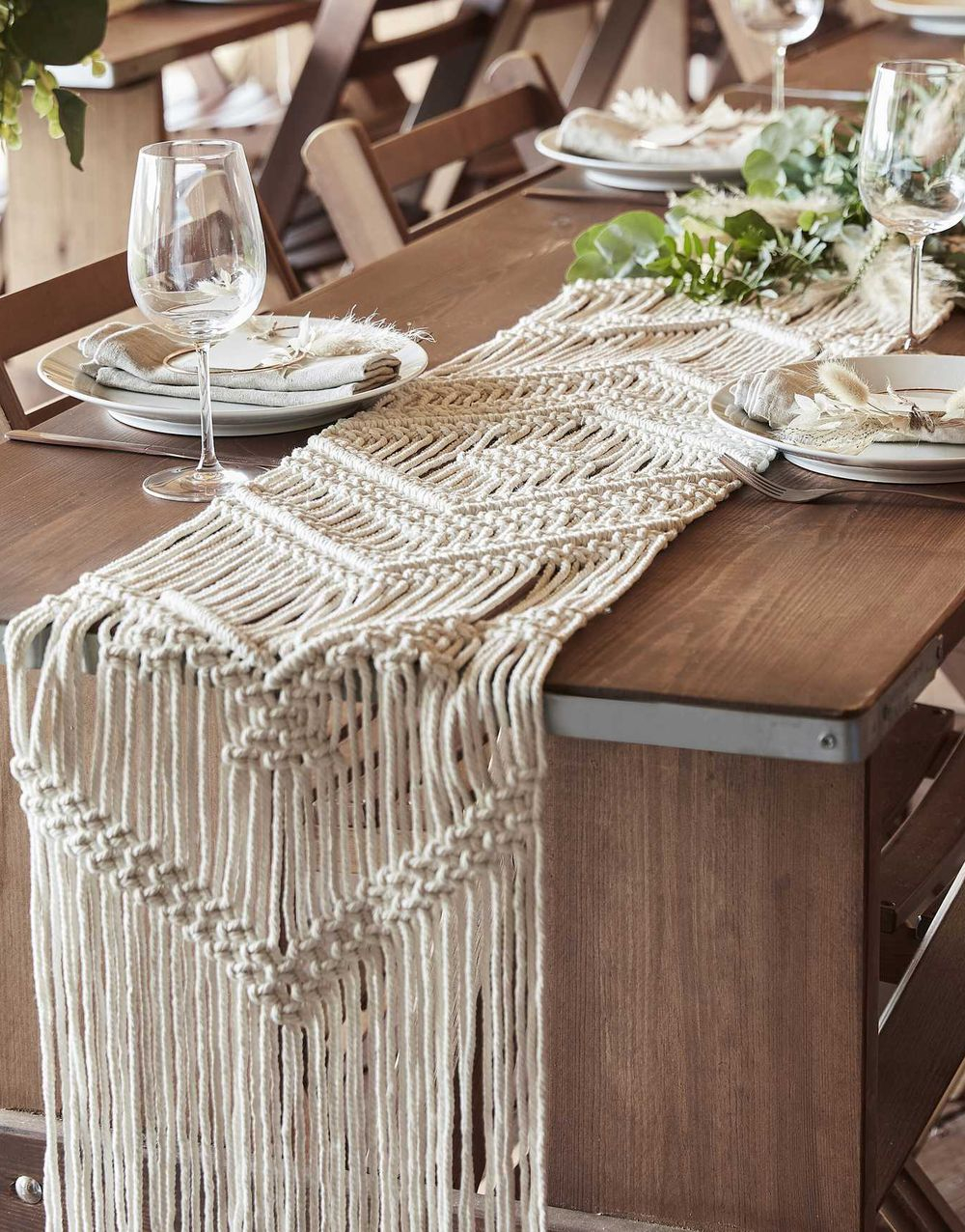 Kremfarget Macrame Bordløper 30x200 cm - Pampas