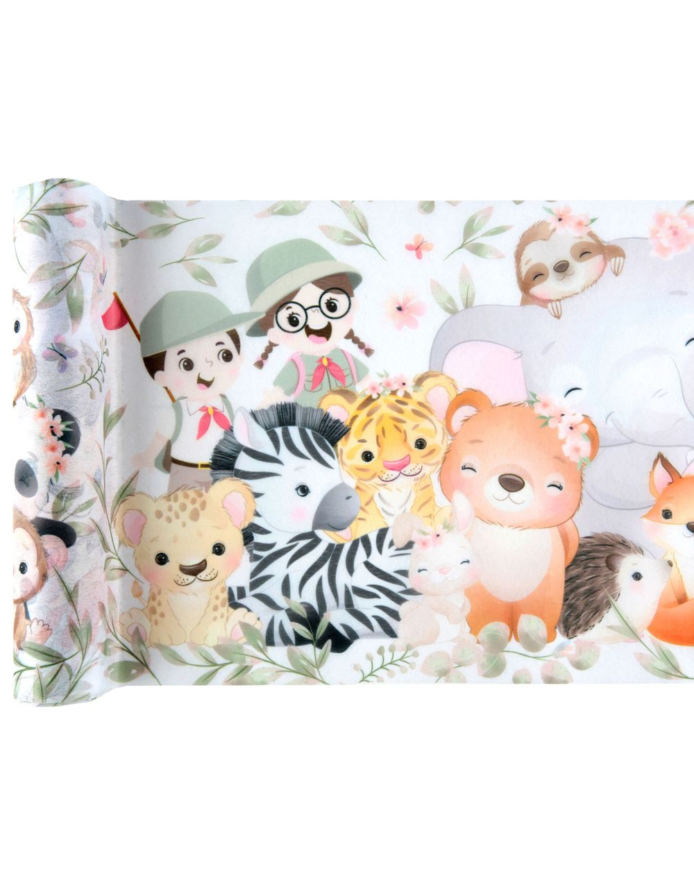 Hvit Bordløper med Blomster og Sommerfuglmotiv - 40 cm x 5 meter