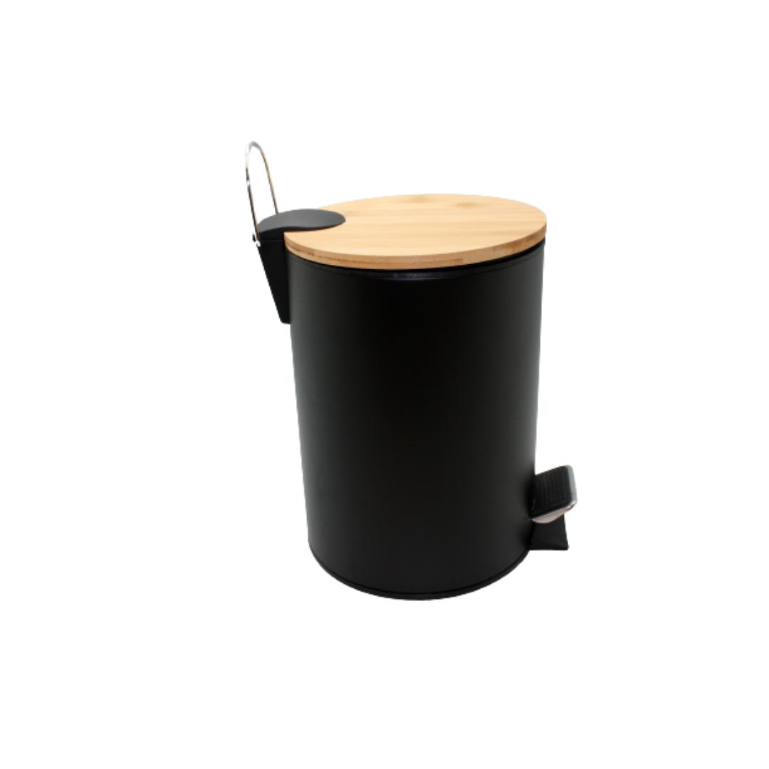 Pedal bøtte 5l sort matt m/lokk i bambus