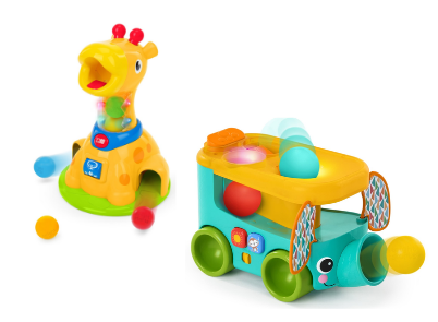 Bright Starts – Pop & Roll Safari Bus + Spinnin’ Spots Giraffe Ball Play (Bundle)