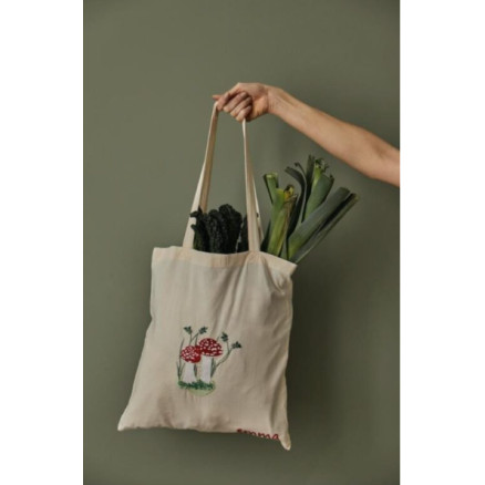 Panduro Hobby Broderikit red mushrooms Ø20 cm – allt för att brodera söta flugsv