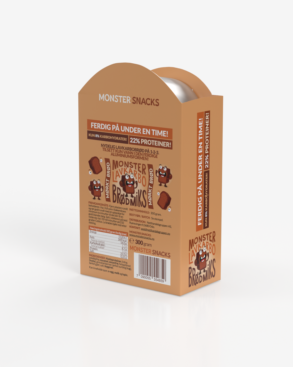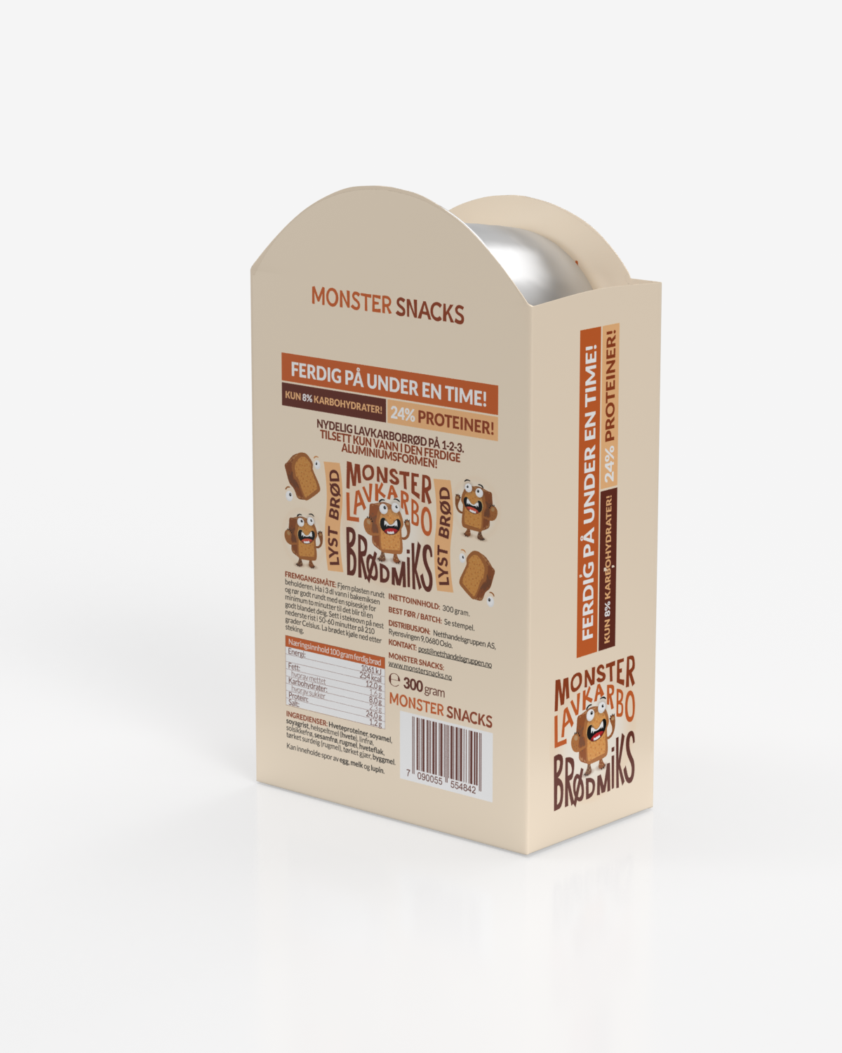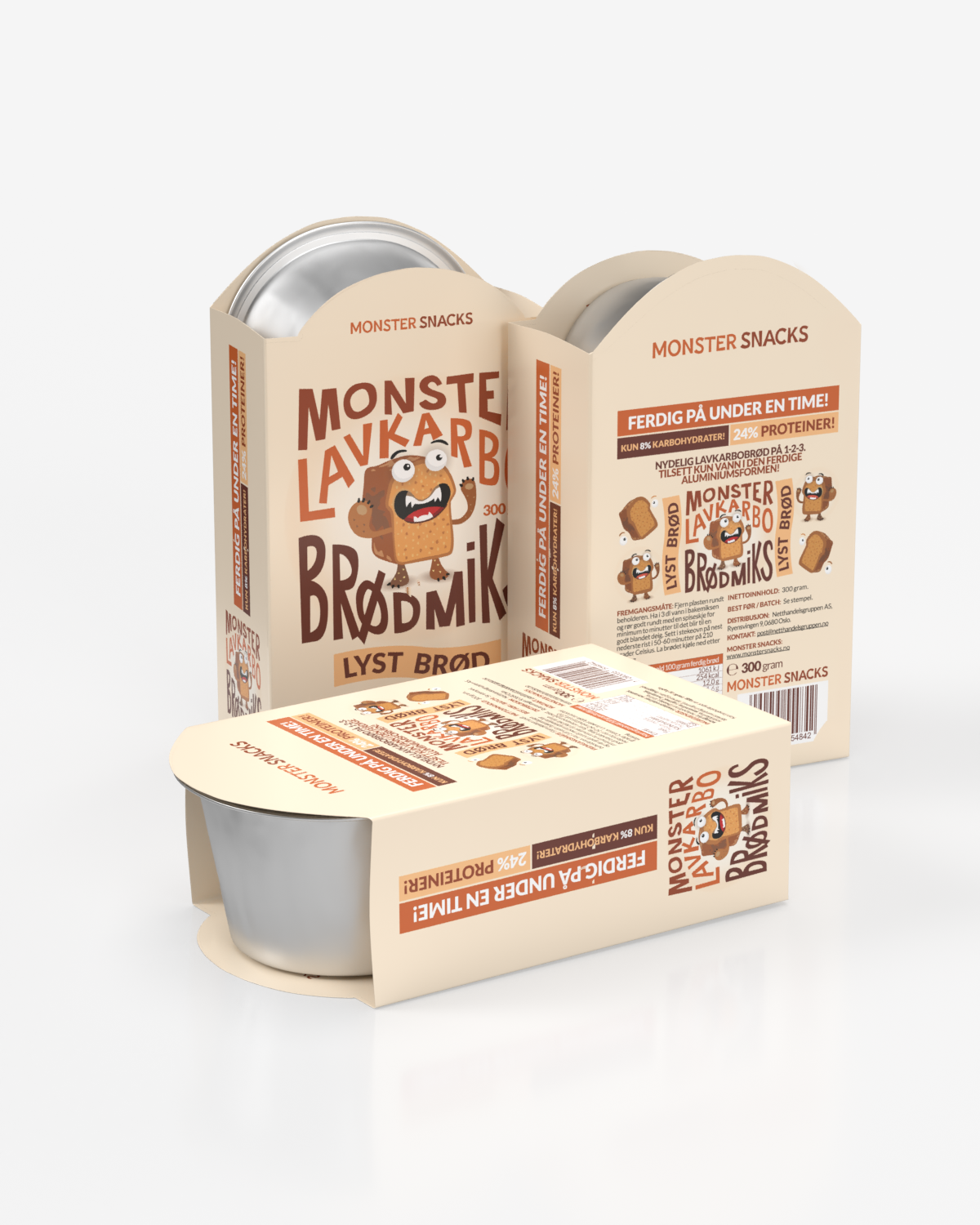 Monster Lavkarbo Lys Brødmiks 300g - MED FERDIG FORM! - GIR 500g BRØD!