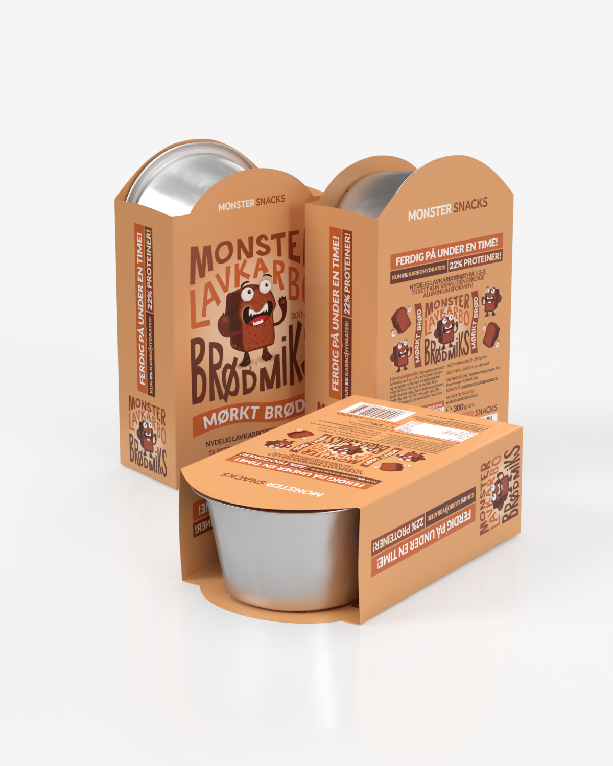 Monster Lavkarbo Mørk Brødmiks 300g - MED FERDIG FORM! - GIR 500g BRØD!