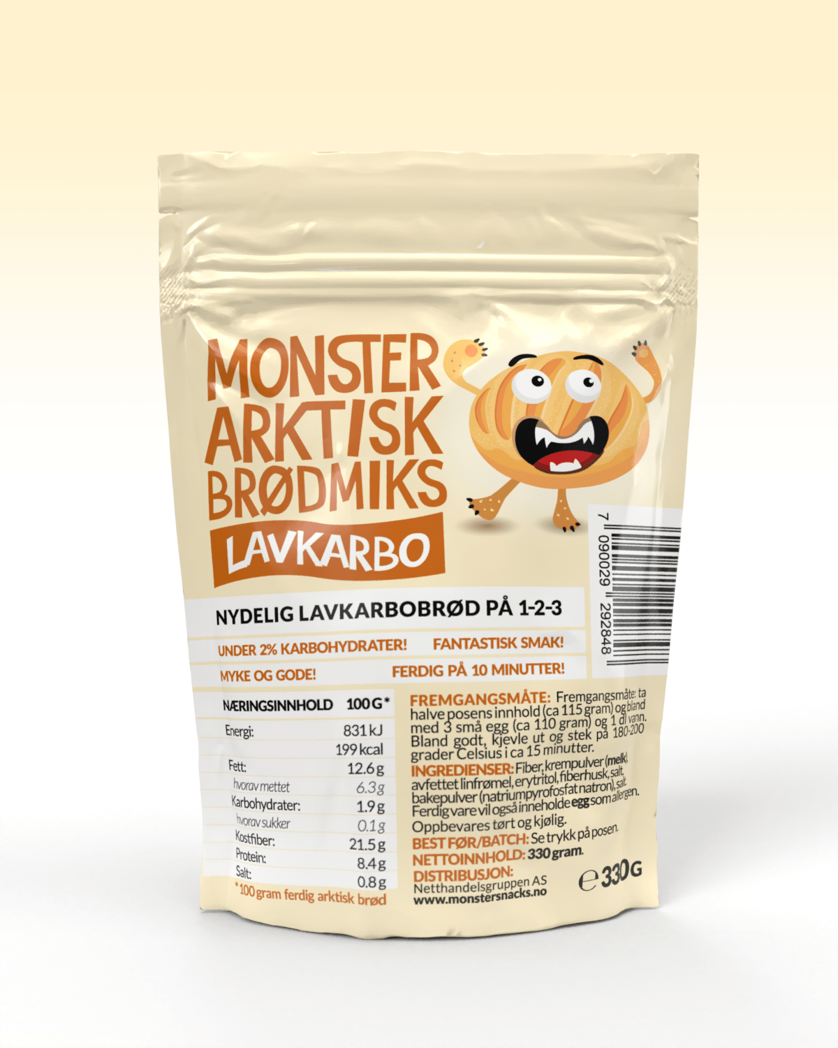 Monster Lavkarbo Lys Brødmiks 300g - TREPAKNING!